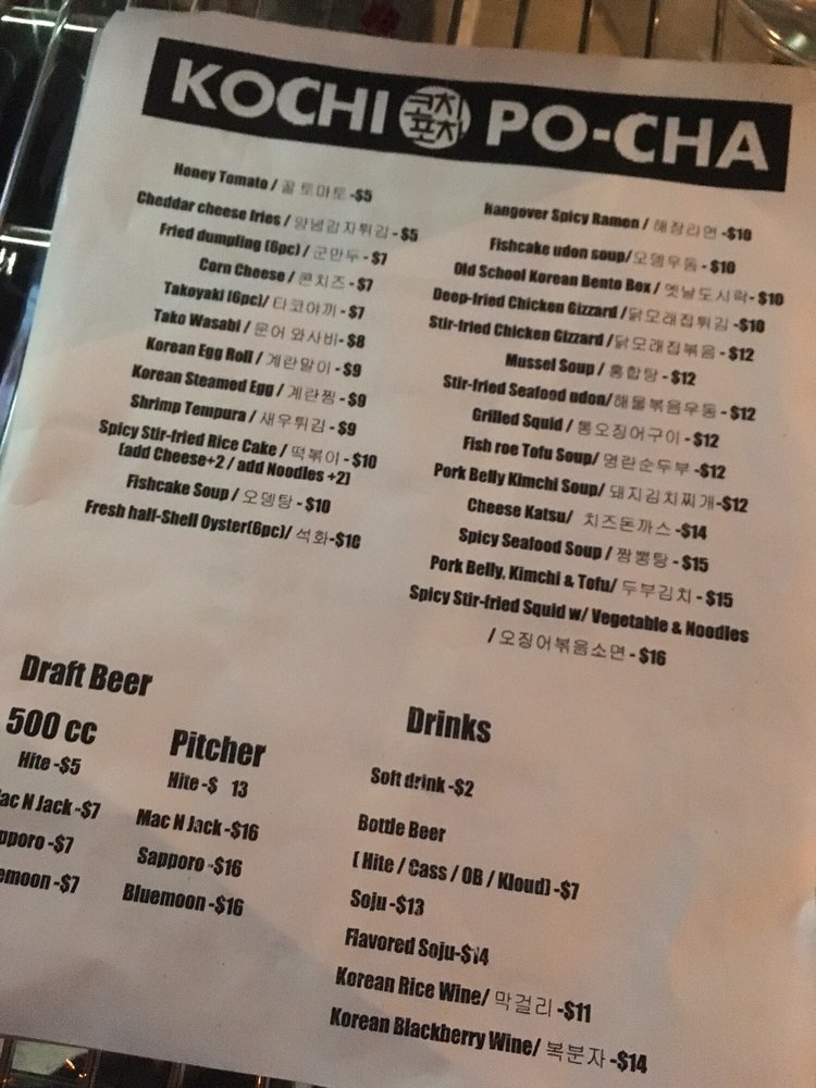 Kochi Po-Cha Menu